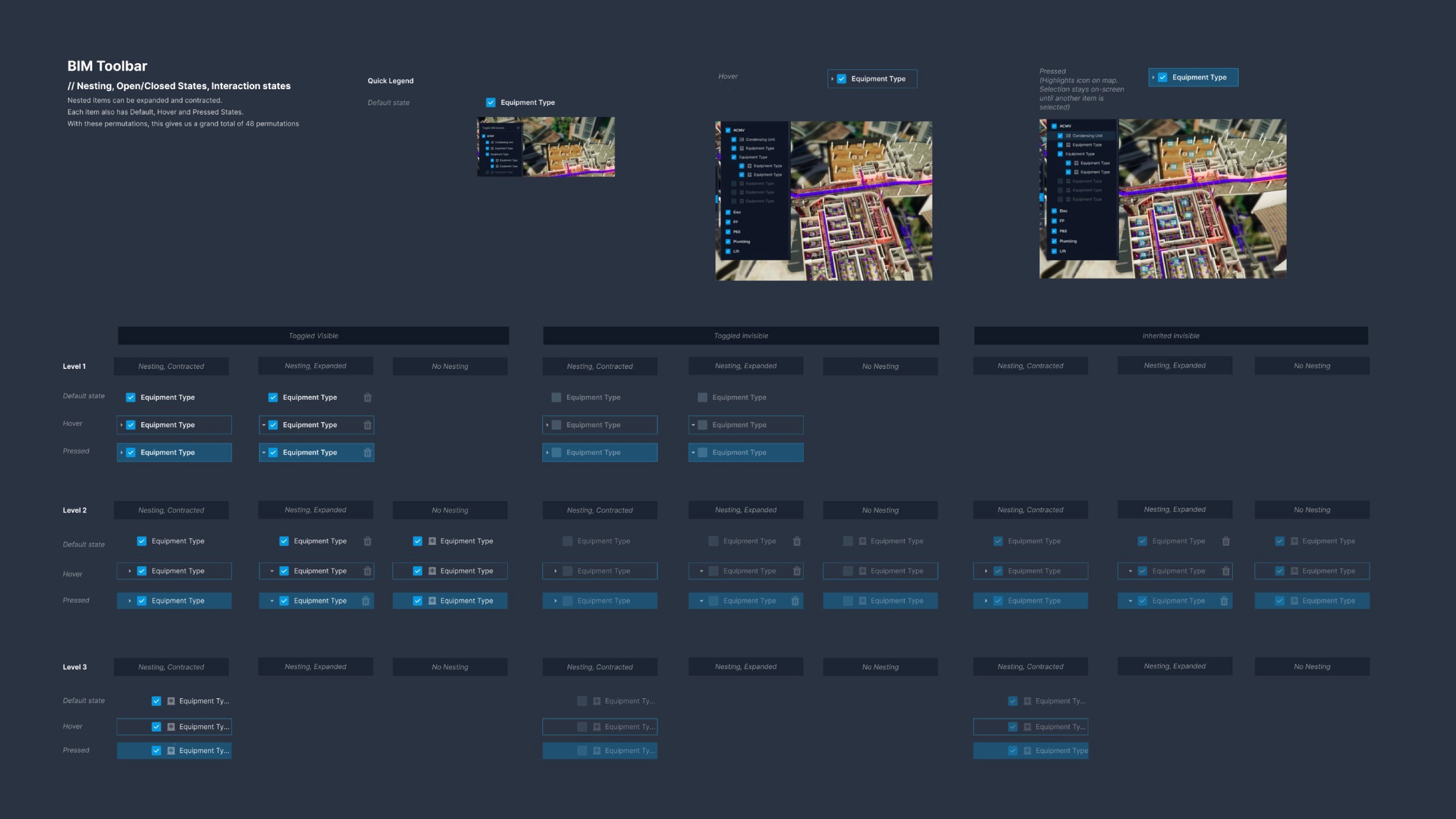 For engineers, we built functionality to expose buildings in 3D view, and to inspect various on-screen elements. I was responsible for dissecting the complexity of the task, and planning how all 2D/3D elements would appear and interact.
